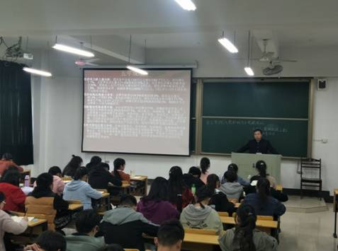 随后,宋洪生作了2018年两会精神学习解读。他以会议概况、主要内容入手,详细介绍了“精准脱贫”、“防范金融风险”、“环境保护”等两会热点话题,并从宪法修改、监察立法、机构改革、领导换届四个方面解读了两会。他结合生动案例与切身体会,深入分析了政府工作报告内容,加深了同学们对两会精神内涵的理解。